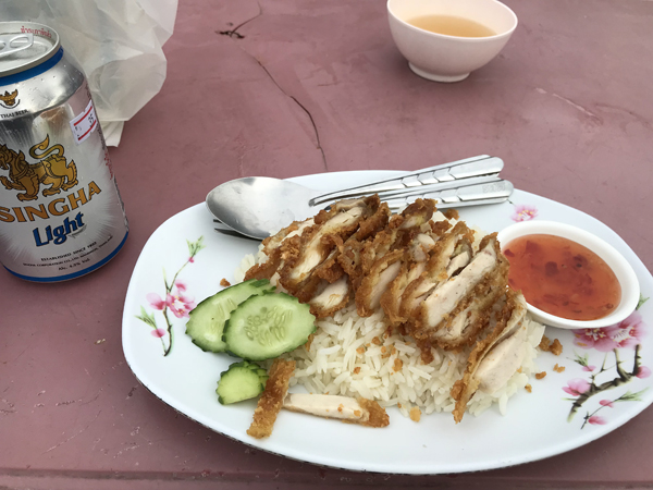 17時頃ホテルについて、近くの屋台で60バーツ(1バーツ=3.5円)のご飯と35バーツのビールで21時には就寝。