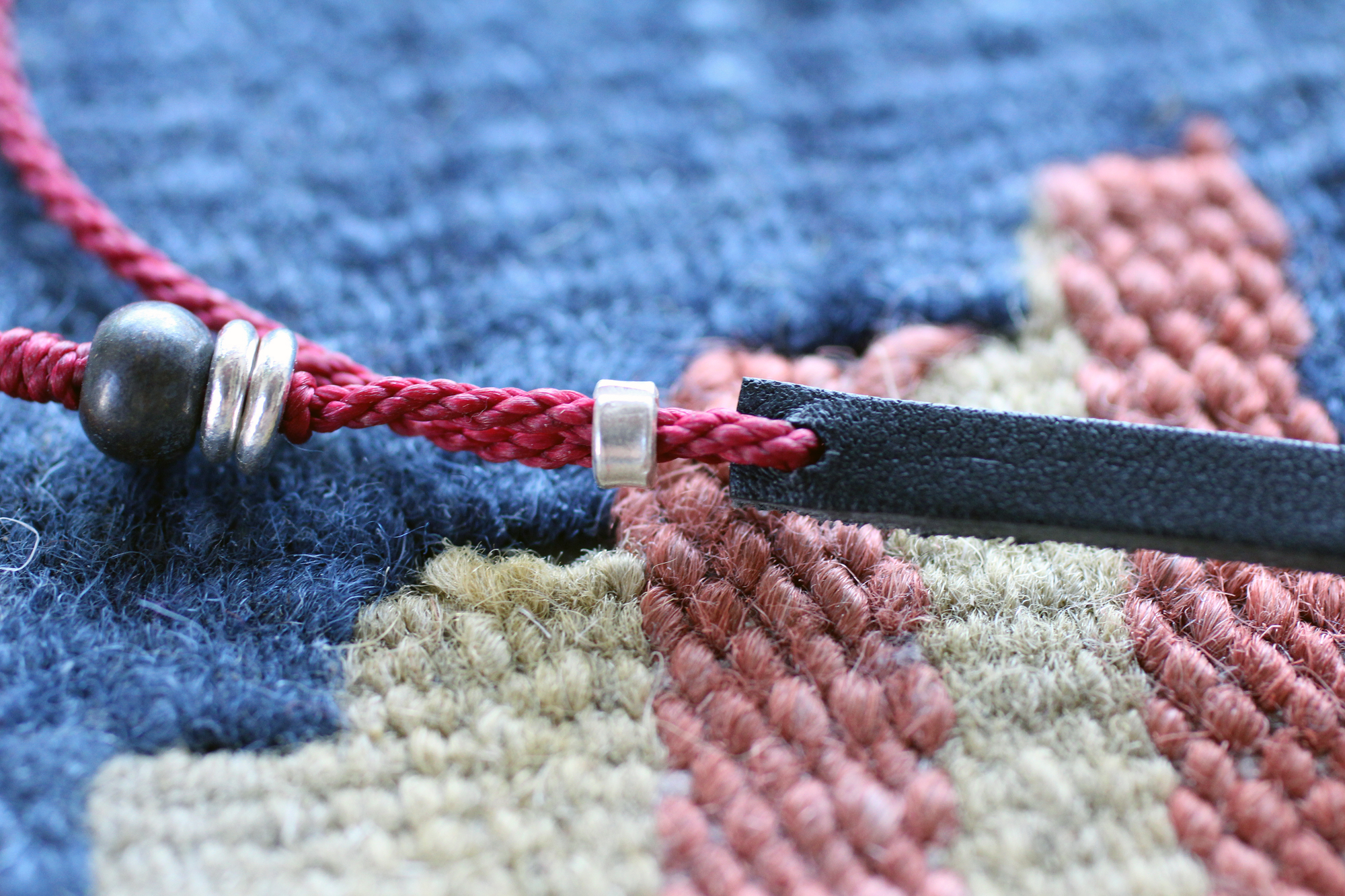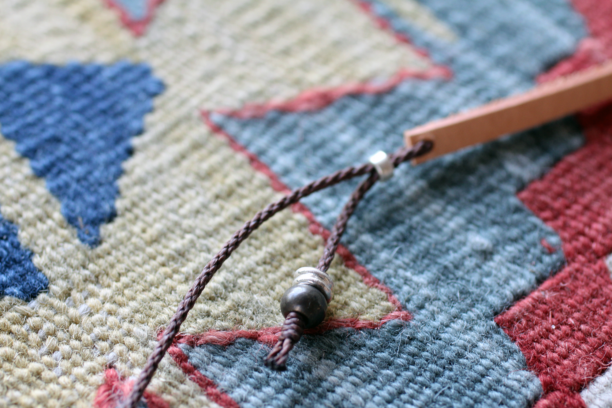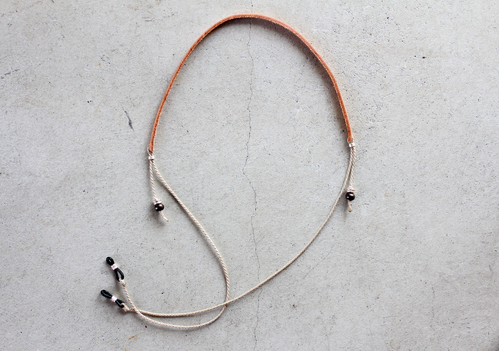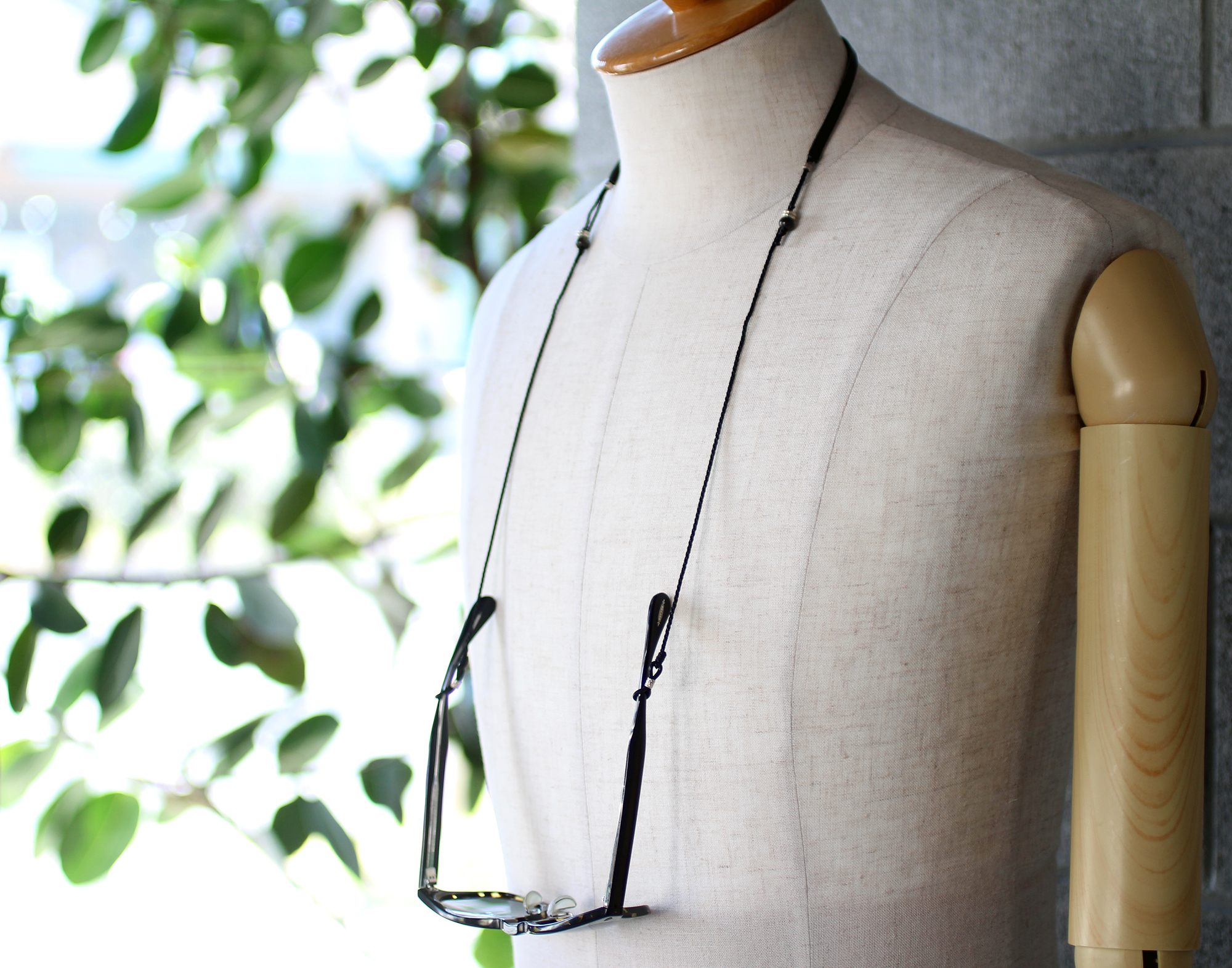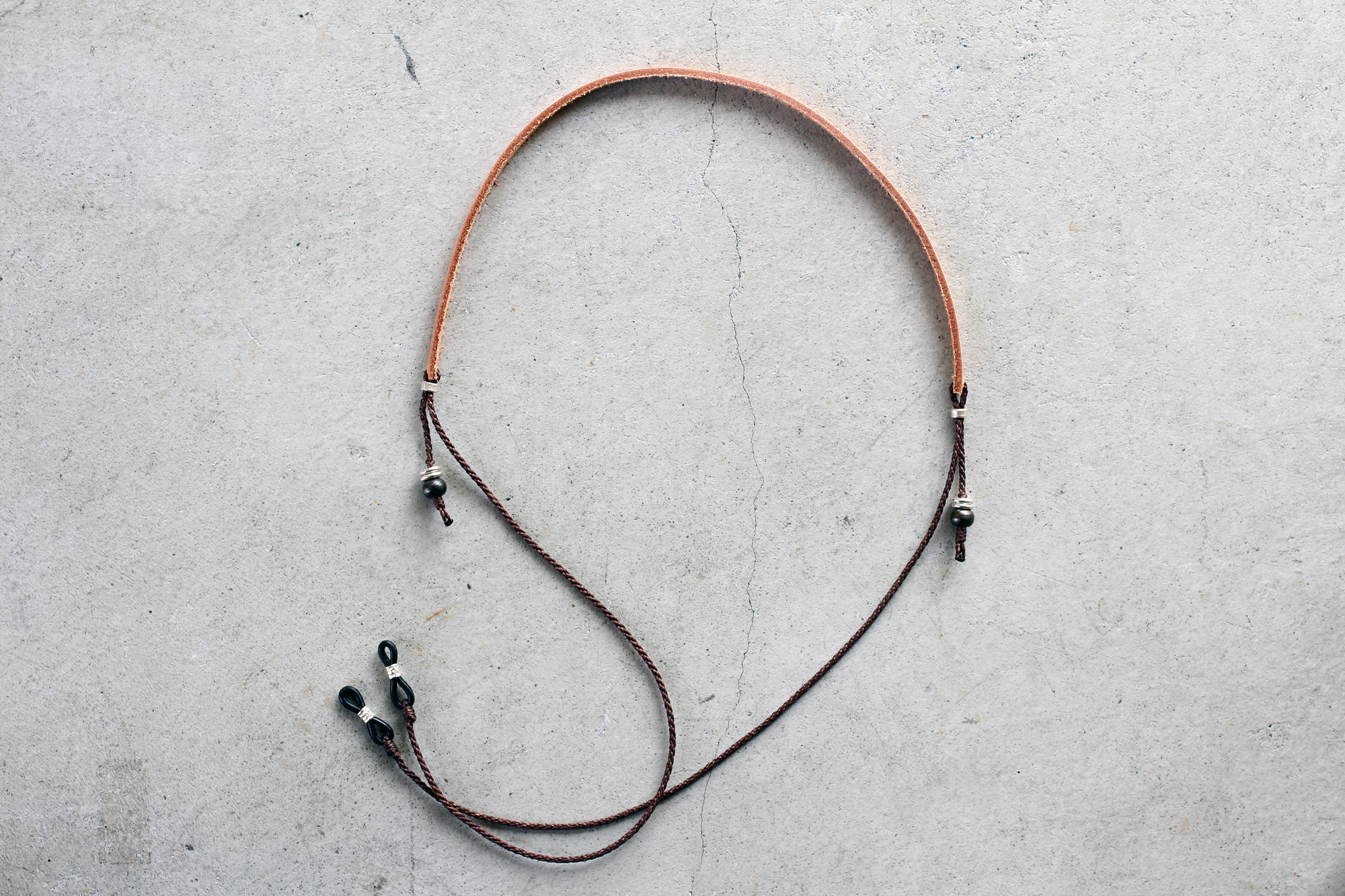 牛ヌメ革のナチュラルとブラックの3㎜幅のレザーコードは、首回りをシンプルに見せ為なえるべく細く、かつしっかりとしたホールド感を感じる幅にしています。