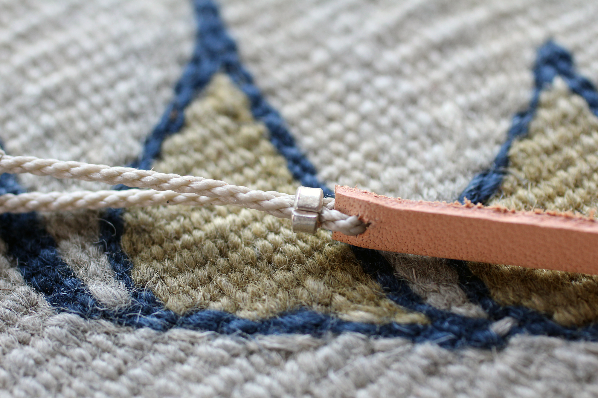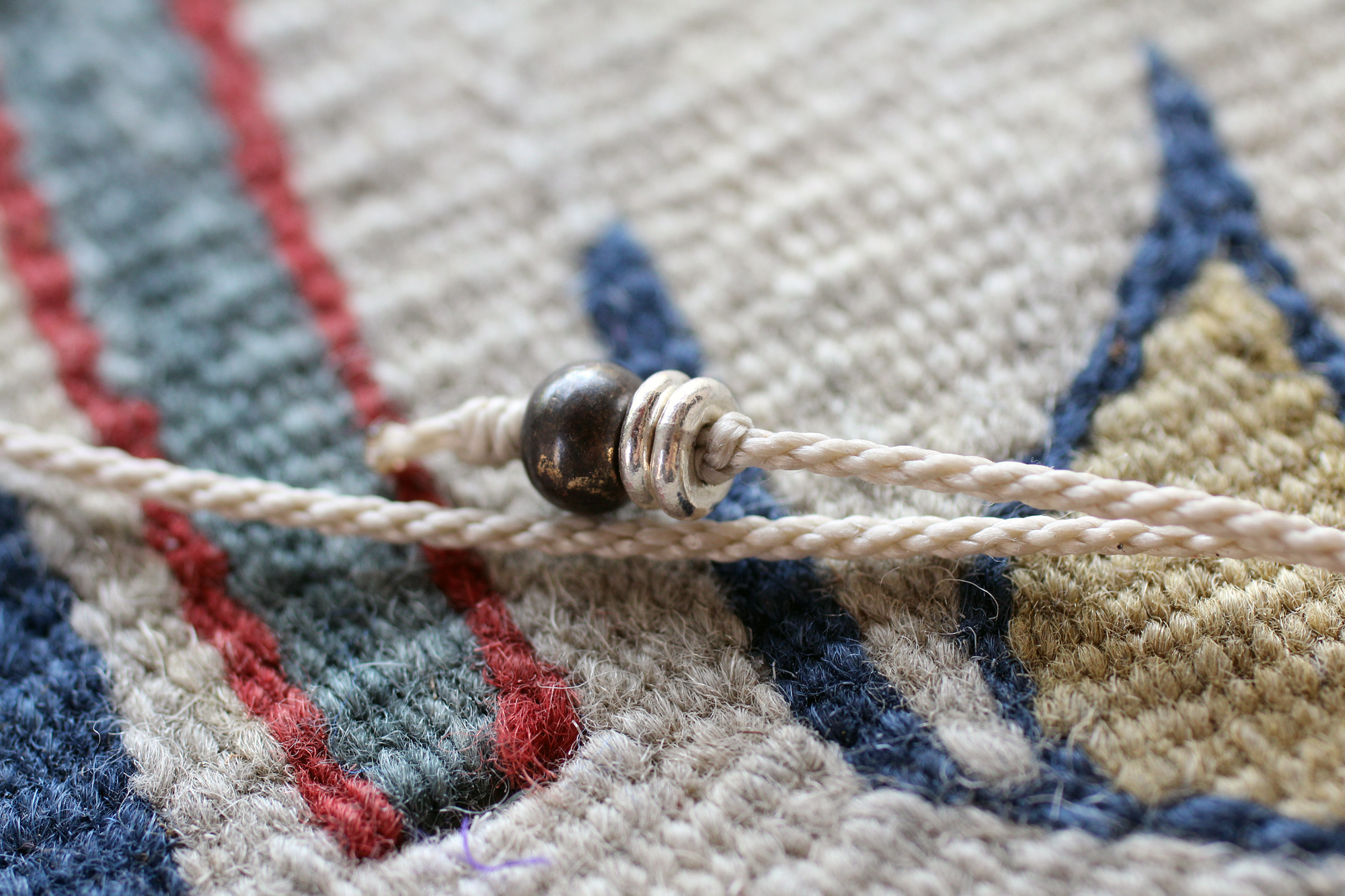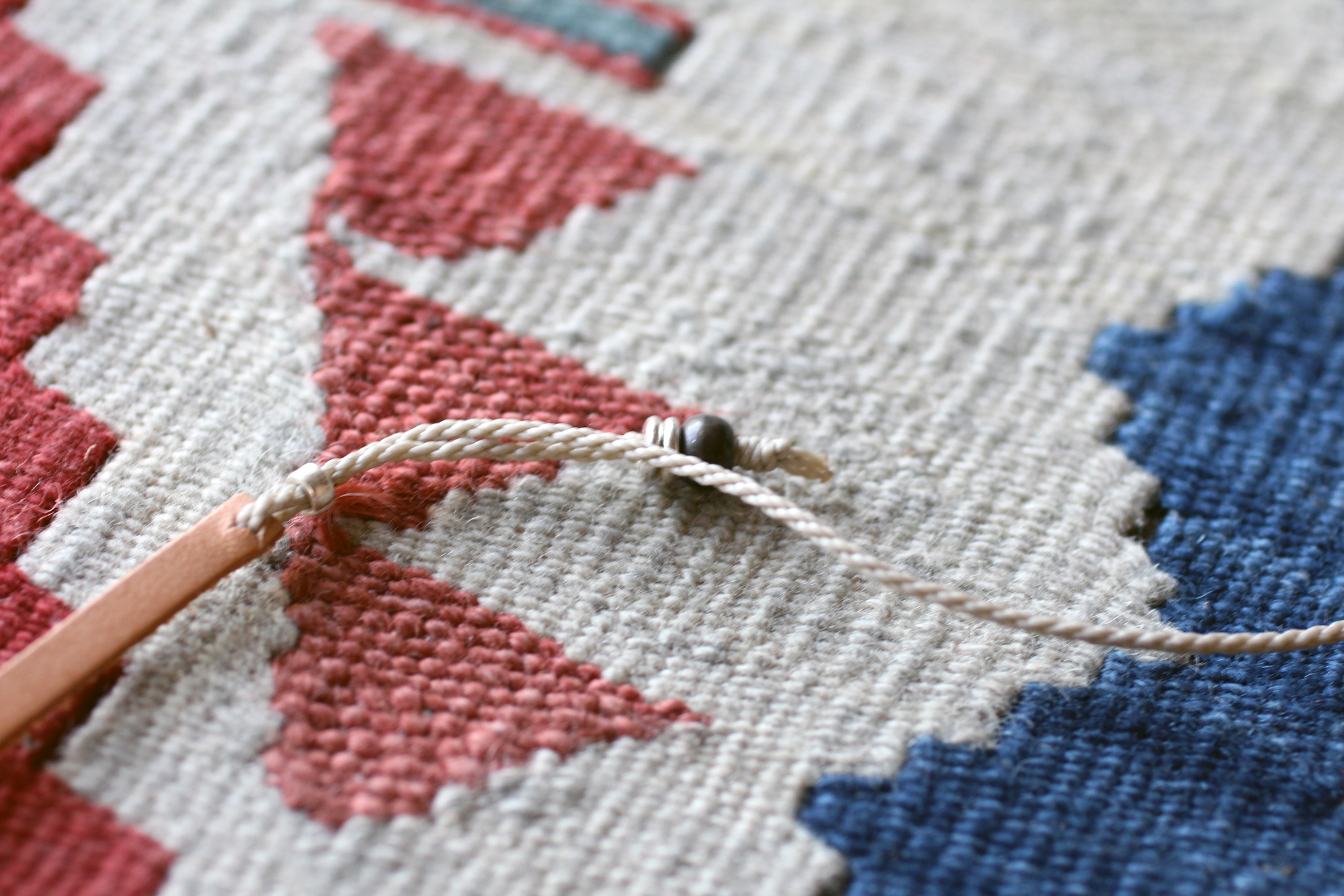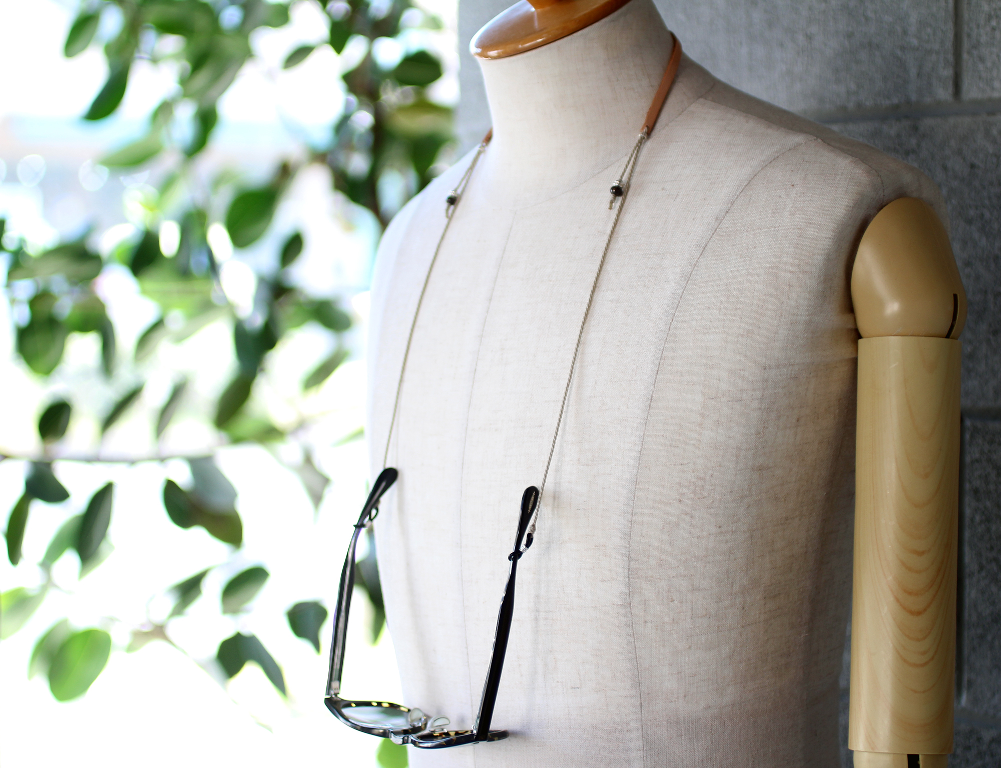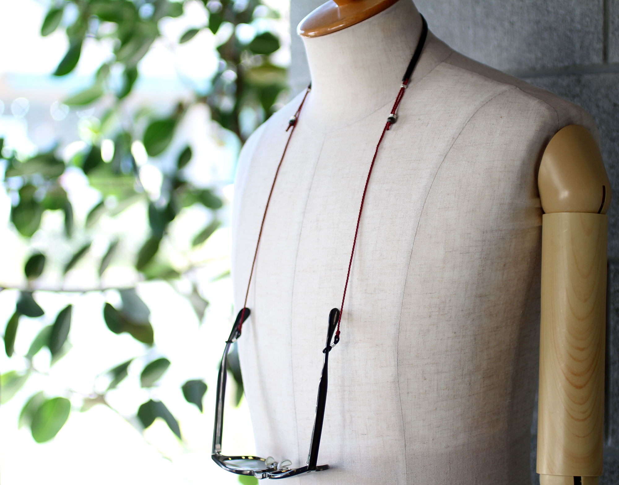 牛ヌメ革のナチュラルとブラックの3㎜幅のレザーコードは、首回りをシンプルに見せ為なえるべく細く、かつしっかりとしたホールド感を感じる幅にしています。