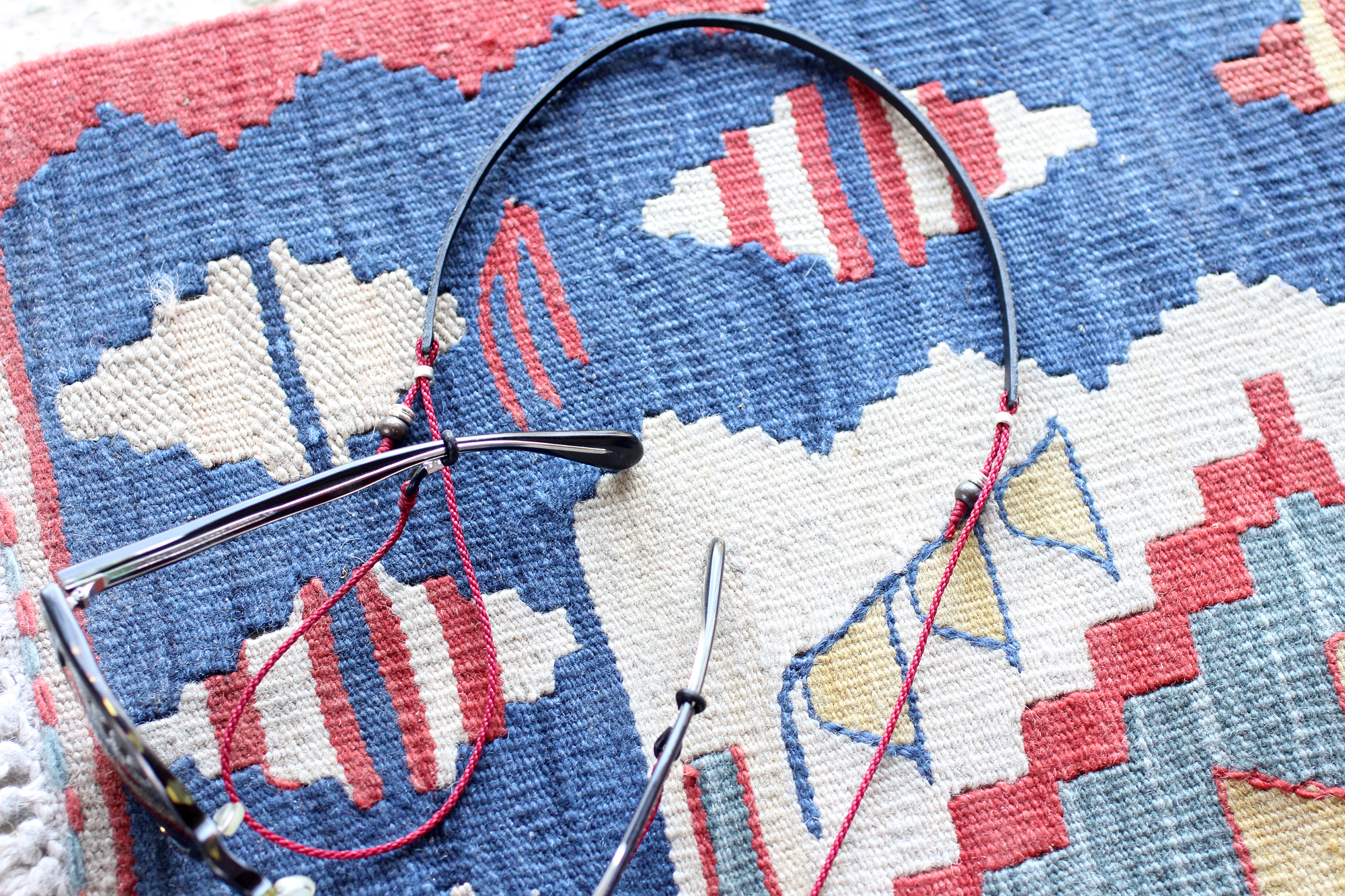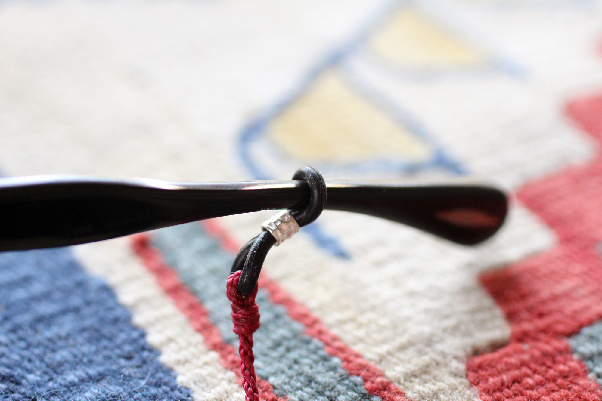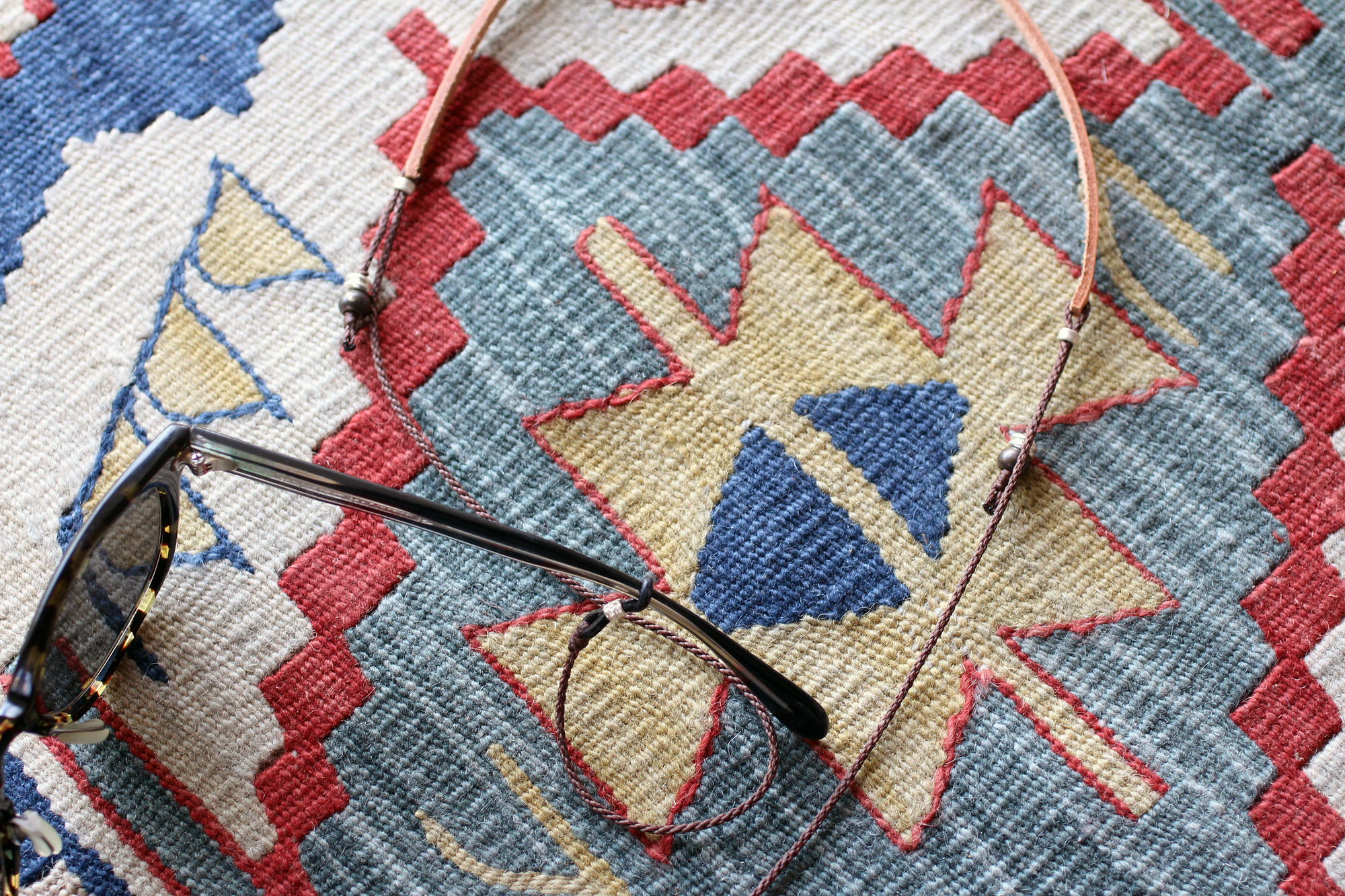ゴム部分の金具は従来の物を取り外し打ち込みのシルバーに変更し、先端部分には燻した真鍮ボールとシルバーを付け、着用感に重みが出るようにしています。