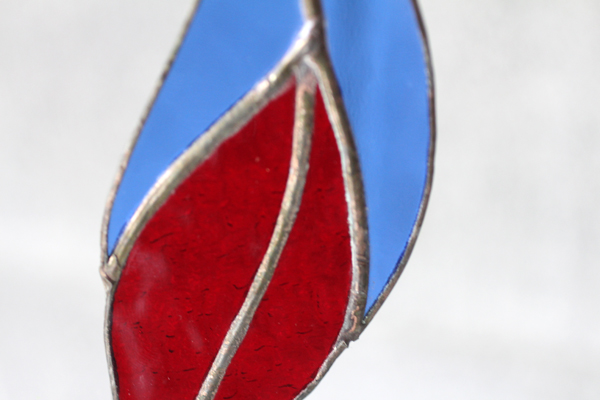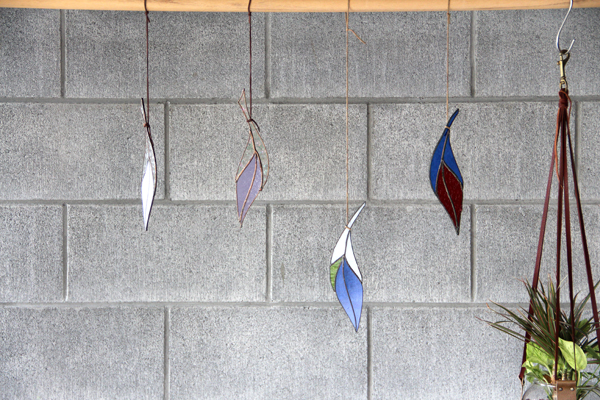 Colinのステンドグラスの作品は、明るく生き生きとした色使いで、窓にさす光に反射して