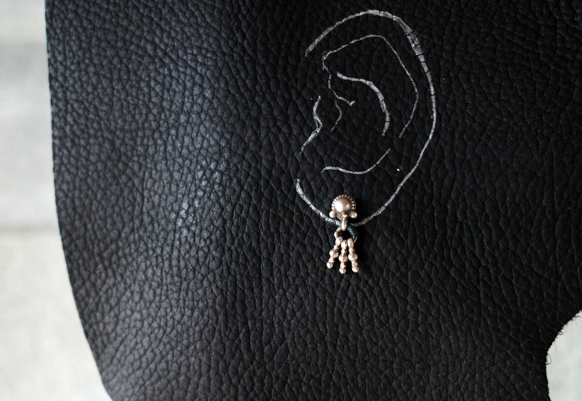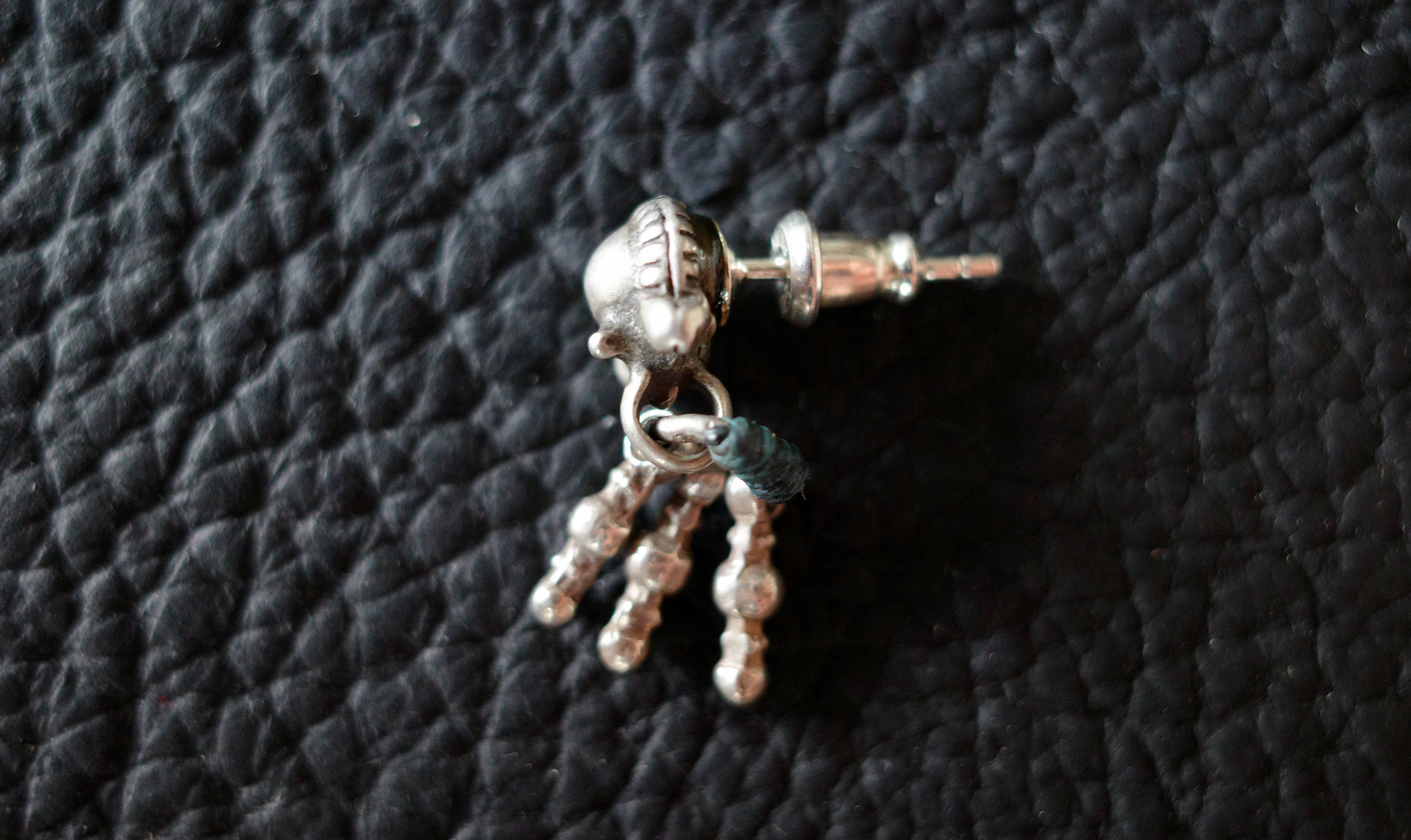 小ぶりで雰囲気の良いトライバルシルバーを多数購入できたので、アジア、アフリカ、アメリカ…どこで生活してるかわからない、私達が想像する架空の部族が身に着けているピアスを作ろうと考えました。