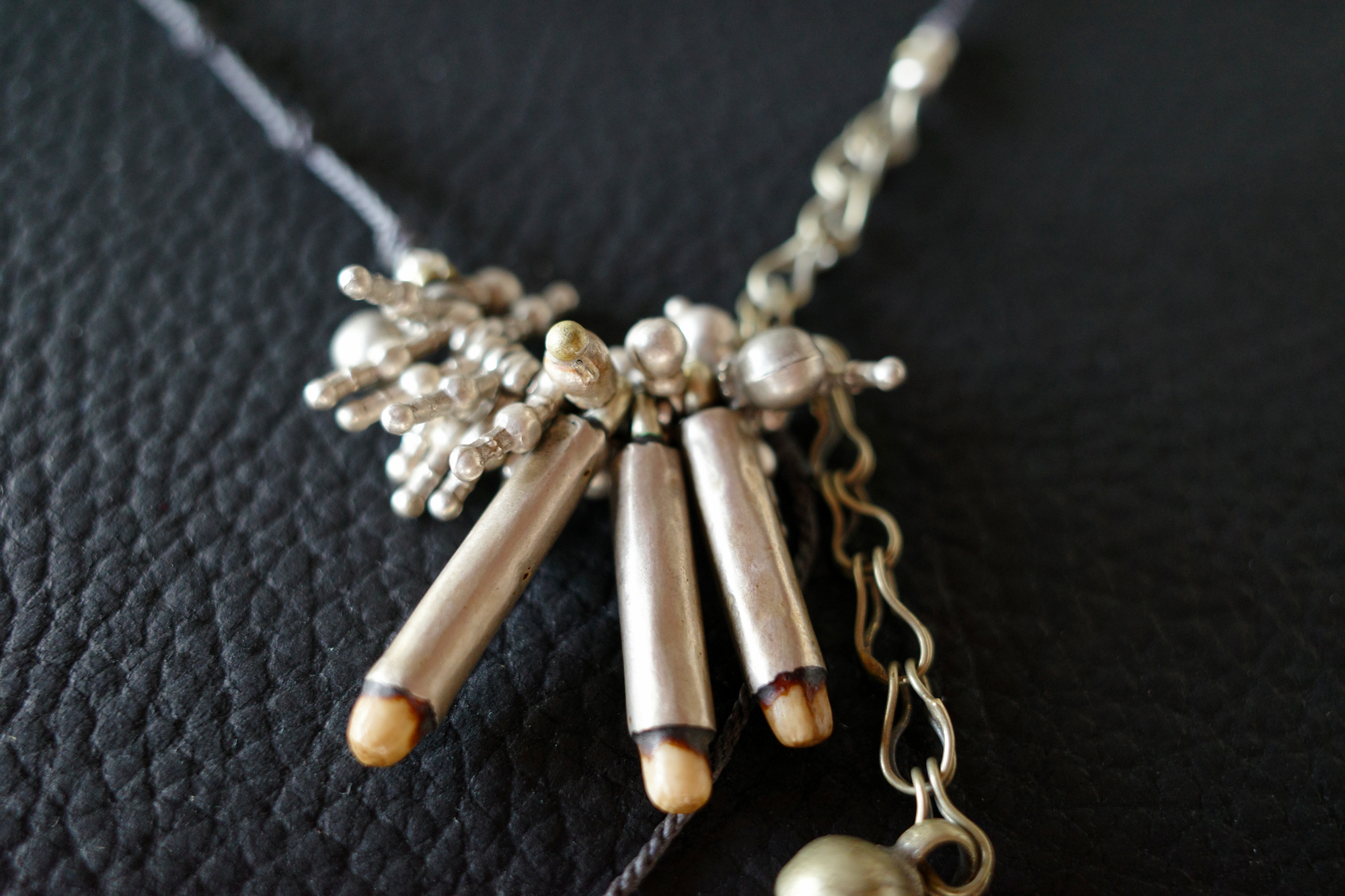 トライバルな部分をふんだんに盛り込みながら、現代ファッションに合うようなネックレスしたつもりです。