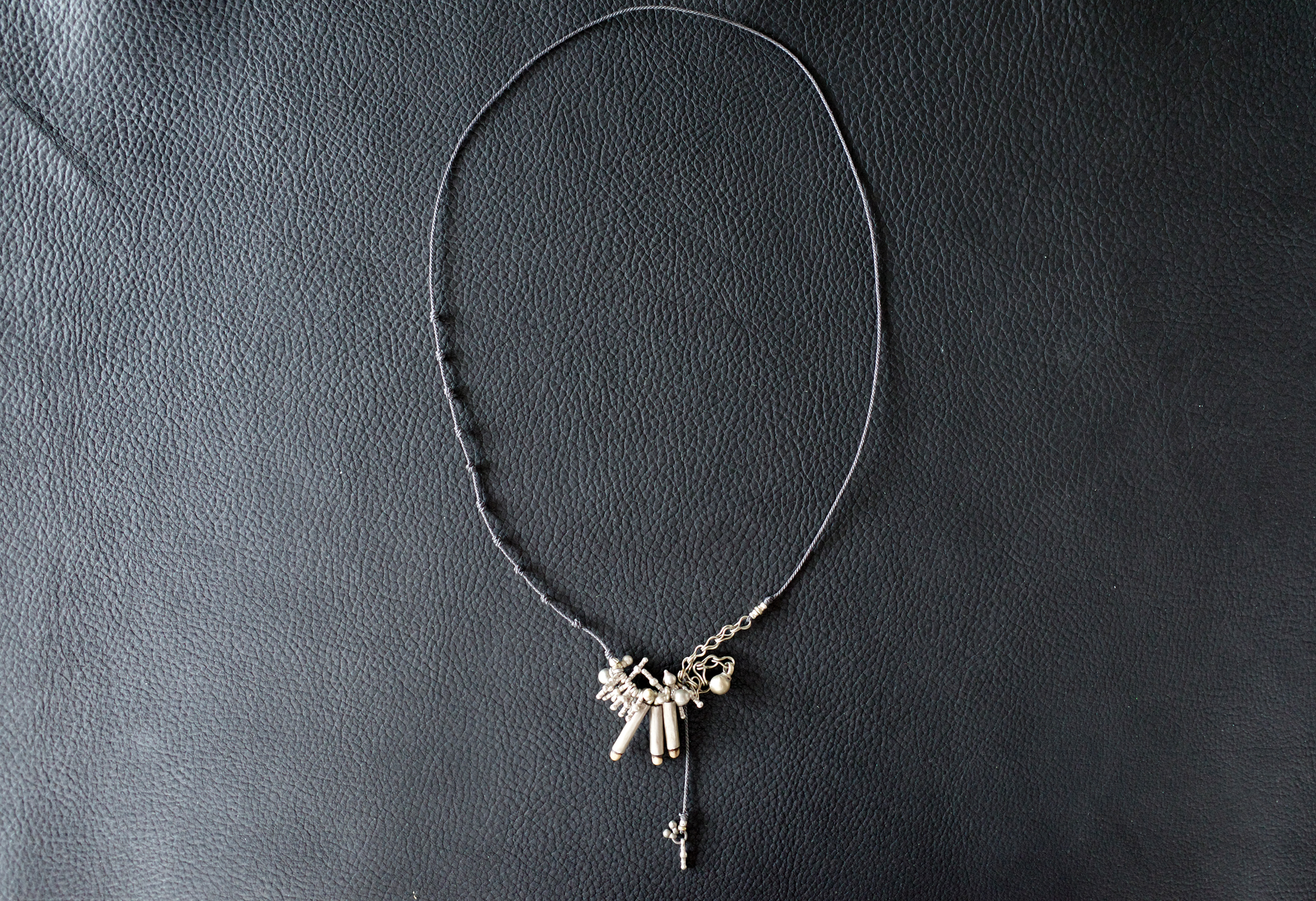紐にも凹凸をつけて立体感あるネックレスに仕上げました。